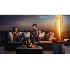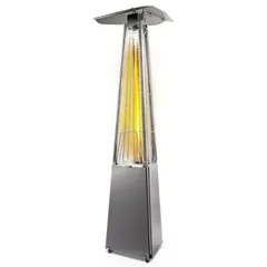 Уличный камин изготовлен из устойчивой к коррозии легированной нержавеющей стали и защищен от попадания атмосферных осадков сверху четырехгранным отражателем, площадь поверхности которого составляет 0,5 м². За безопасность эксплуатации отвечает многоуровневая система защиты. Датчик наклона отключает пламя при наклоне газового обогревателя более чем на 45°, термоэлектрический датчик и электромагнитный клапан сразу же останавливают подачу газа в критических ситуациях, таких как затухание пламени или утечка газа. За счёт встроенной колёсной базы обогреватель свободно и безопасно можно перемещать по любой поверхности.