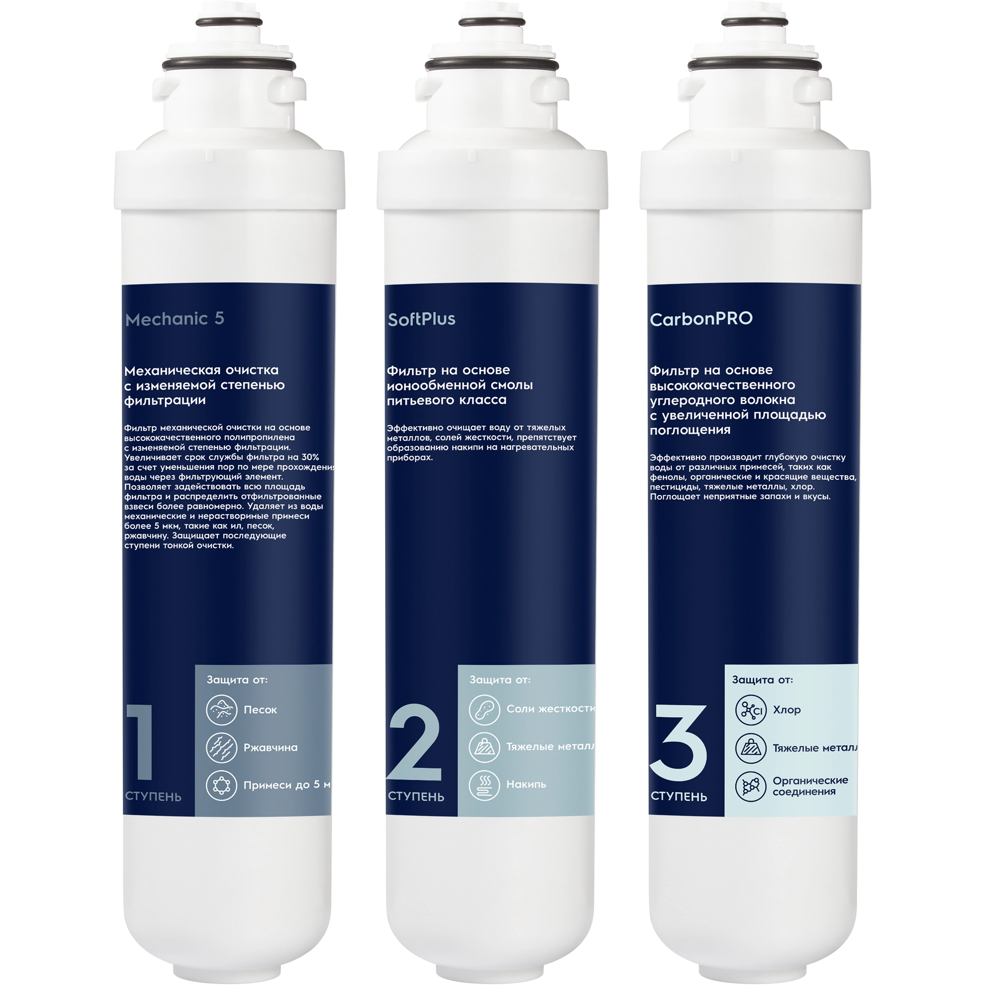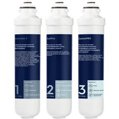 Комплект сменных картриджей к системам фильтрации воды Electrolux серии iStream. Подходит для очистки хлорированной воды с высоким содержанием солей жесткости.