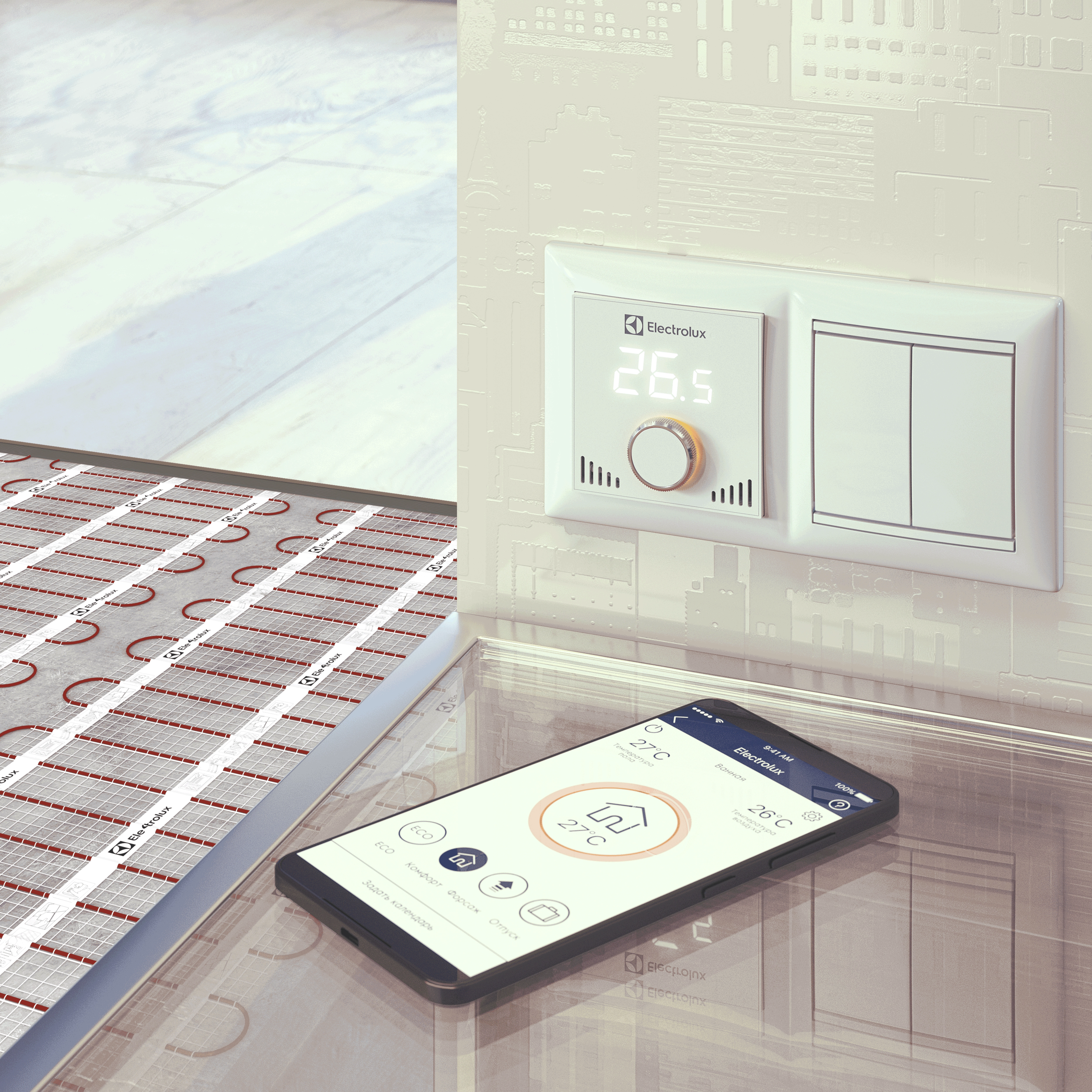 Electrolux создает революционный терморегулятор Thermotronic Smart (ETS-16), открывая двери в мир Интернет вещей. Технологии wi-fi переносят классическое стационарное управление тёплыми полами в ваш смартфон. Превращая повседневные обязанности в увлекательную игру: управляйте комфортом в вашем доме из любой точки мира, переключайте заранее заданные режимы одним касанием, легко настройте работу системы под ваш индивидуальный режим, используйте тёплые полы тогда, когда они нужны, экономя до 70% затрат на электроэнергию.