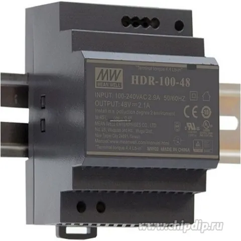 Блок питания MEAN WELL HDR-100-24N, 24В,4.2А,100.8Вт