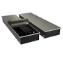 Корпус окрашен в черный цвет высококачественной краской Akzonobel. В такой же цвет окрашен теплообменник. Темная окраска корпуса изнутри и декоративные крышки, защищающие зону подключения и зону калача от попадания пыли и мусора, визуально скрывают внутреннюю часть, благодаря чему конвектор эстетично смотрится в интерьере.
