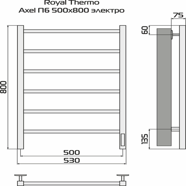 Полотенцесушитель Royal Thermo Axel П6 500х800 электро (встроен. диммер) стальной