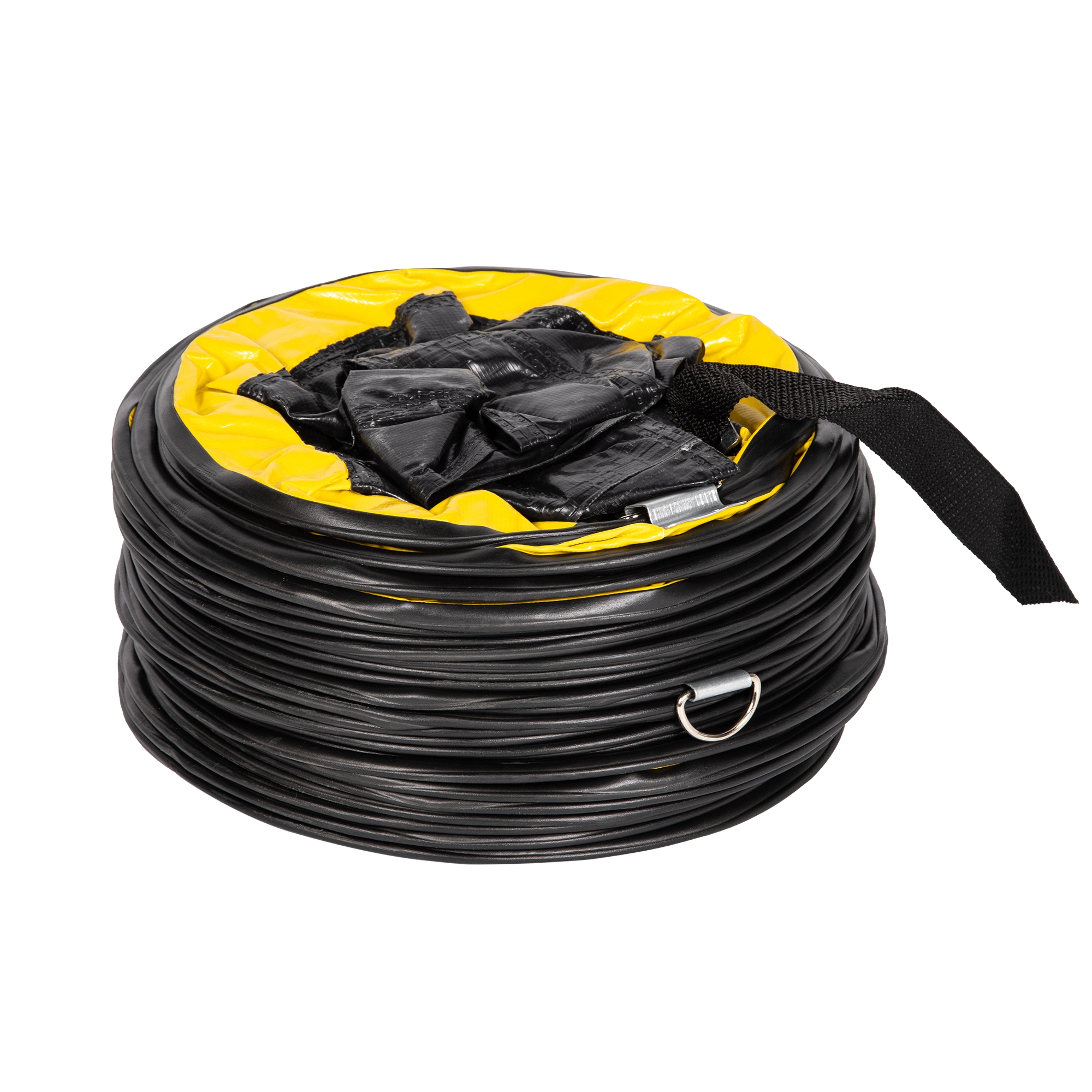 Выполнен из негорючей ПВХ ткани, водостойкий, армирован стальной спиралью.