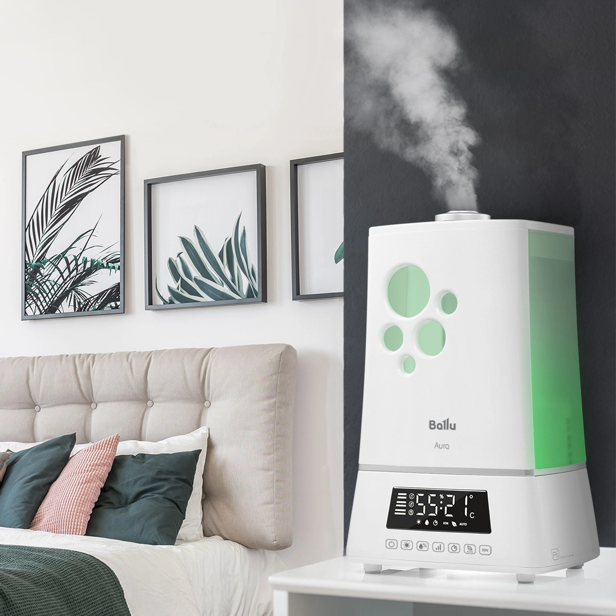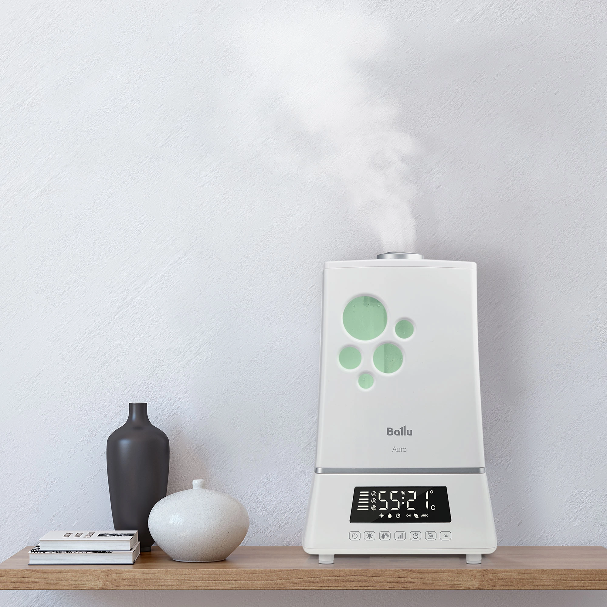 Увлажнитель серии Aura Ballu UHB-1100 - это уникальное сочетание современных технологий увлажнения воздуха, воплощенные в непревзойденном дизайне и гарантирующие исключительную атмосферу комфорта, свежести и уюта в вашем доме. Плавные линии корпуса моментально привлекают внимание, двухуровневая подсветка подчеркивает совершенный белый цвет прибора и придает дополнительную эстетичность его внешнему виду. Безупречный комфорт с увлажнителем Aura гарантирован благодаря широкому набору интеллектуальных режимов, включая режим «теплого пара», 3 скоростей увлажнения воздуха, эргономичного пульта дистанционного управления, таймера и автоматического режима работы.