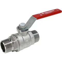 Кран шаровой, резьба наружная/наружная, стандартный проход, хромированный, ручка - рычаг красный.