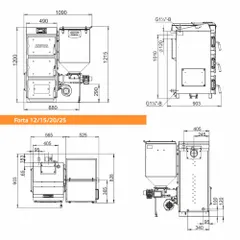 Котел угольный ZOTA Forta 15 кВт (DM) с автоматической подачей топлива (котёл + бункер c мех.под.)