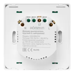 Умный диммер предназначен для диммирования, включения и выключения освещения (лампы, светильники, люстры, LED ленты и пр.) вручную с помощью энкодера, удаленно при помощи приложения на смартфоне или с помощью голосового помощника Алиса, Салют. Диммер позволяет менять яркость освещения и устанавливать диапазон регулирования яркости осветительных приборов. Совместим с большинством типов ламп (накаливания, галогенные, светодиодные, филаментные). Устройство поддерживает протокол zigbee 3.0, для подключения к приложению требуется zigbee хаб (приобретается отдельно). После подключения умный диммер выполняет роль zigbee-роутера, что усиливает и расширяет покрытие сигнала zigbee. В оригинальном приложении Hommyn доступны такие настройки как изменение пределов уровня яркости источника освещения, выбор типа лампы, создание расписаний, функция памяти состояния питания после аварийного отключения электричества и прочее. Устанавливается в стену, в стандартную круглую монтажную коробку в разрыв фазы с обязательным использованием нулевого провода (нейтралью). Применяется в однофазных цепях переменного тока номинальным напряжением 100-240 В, с частотой 50–60 Гц, выдерживает нагрузку мощностью (резистивная нагрузка) до 300 Вт или 220 Вт (для LED). Устройство предназначено для использования только внутри помещений.