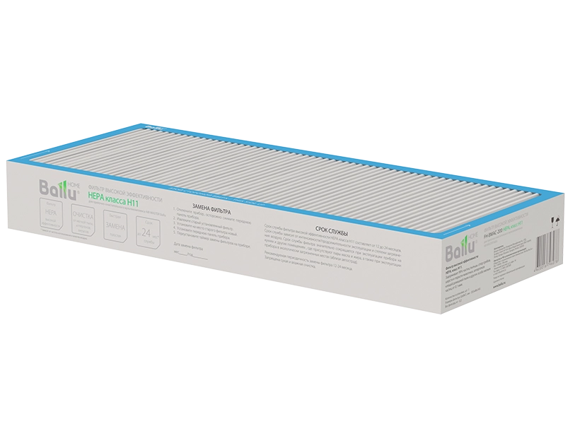 HEPA фильтр класса H11 задерживает 99% частиц размером от 0,3 мкм: пыльцу, споры грибов, шерсть и перхоть животных, аллергены, бактерии, вирусы, плесневые грибы. Рекомендованы для использования в медицинских помещениях, значительно снижают проявление аллергических реакций. Средний срок службы - 2 года.