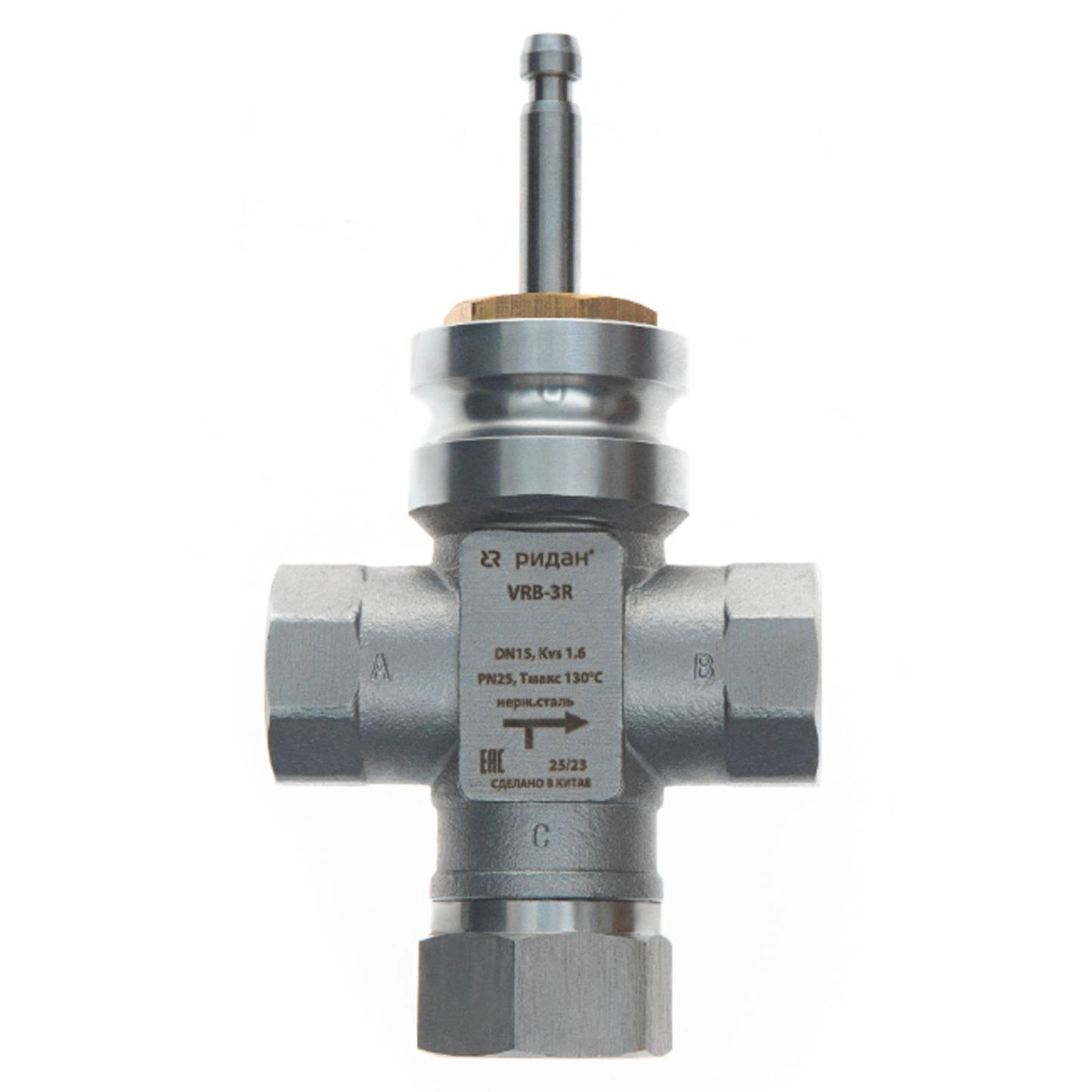 Клапан регулирующий РИДАН VRB-3R PN25 DN15 KVS4 Tmax130, 3-х ход., седельный, внутр.рез.,нерж.сталь