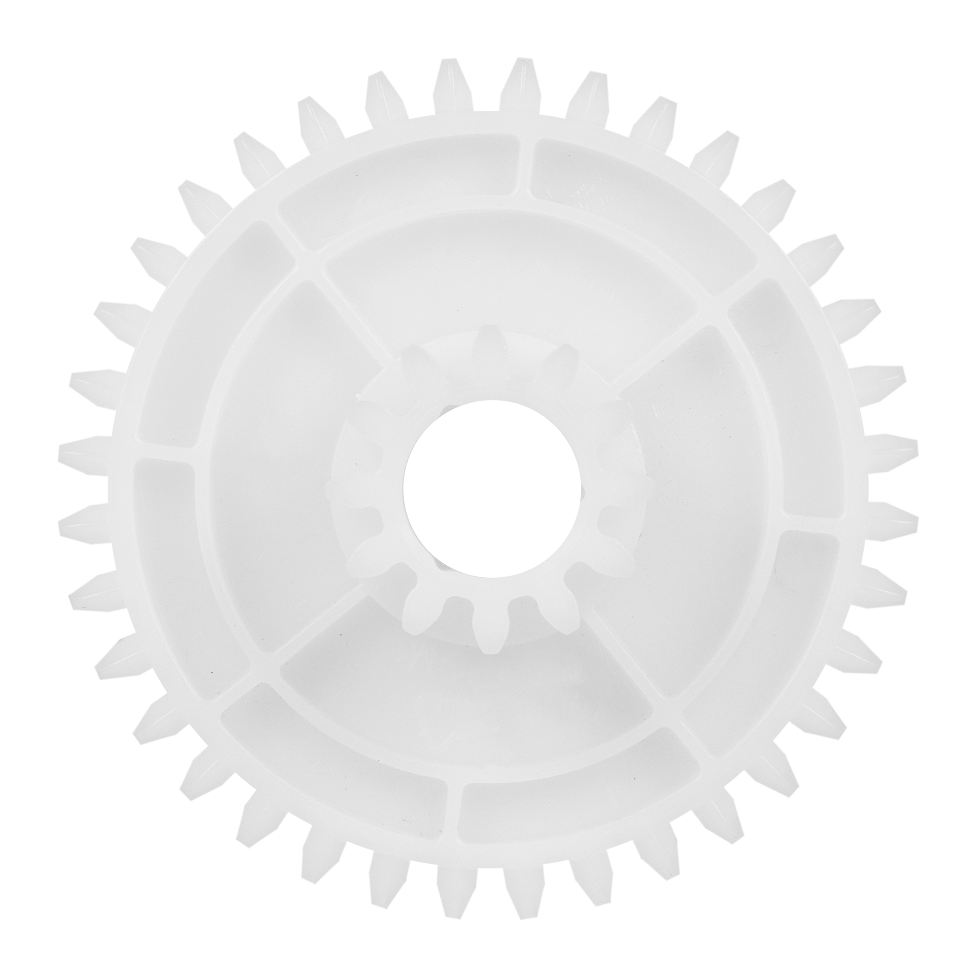 Колесо зубчатое оси дисков большое (40150200149) применяется в механизме вращения моечных установок для равномерного распределения воздушного потока внутри устройства. Зубчатое колесо обеспечивает плавное вращение вала, к которому крепятся диски с очистительными элементами, такими как губки или фильтры.