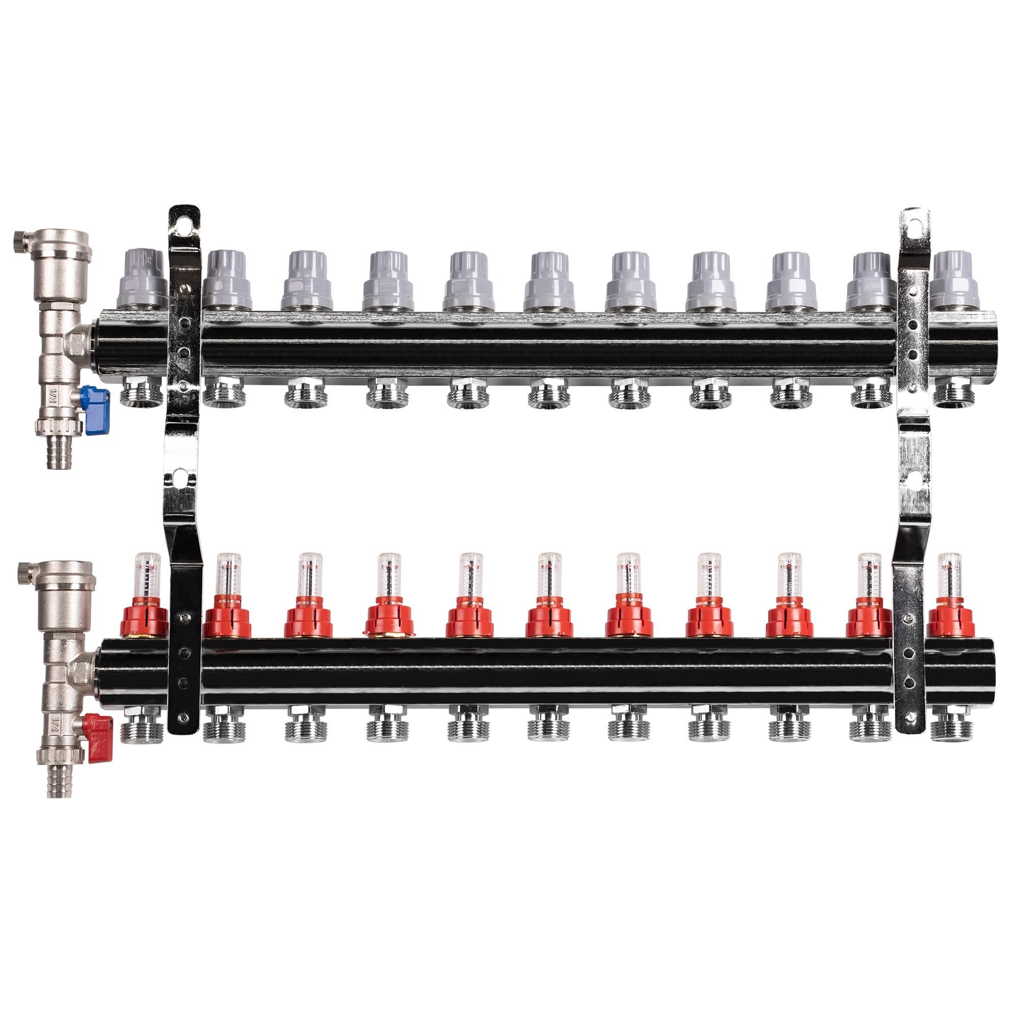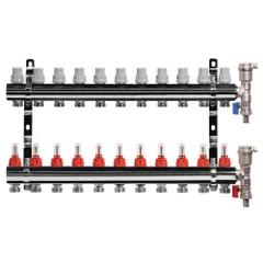 Коллектор Royal Thermo нерж. в сборе с расходомерами 1" ВР-3/4" НР с автомат.воздухоотвод-ми 11 вых.