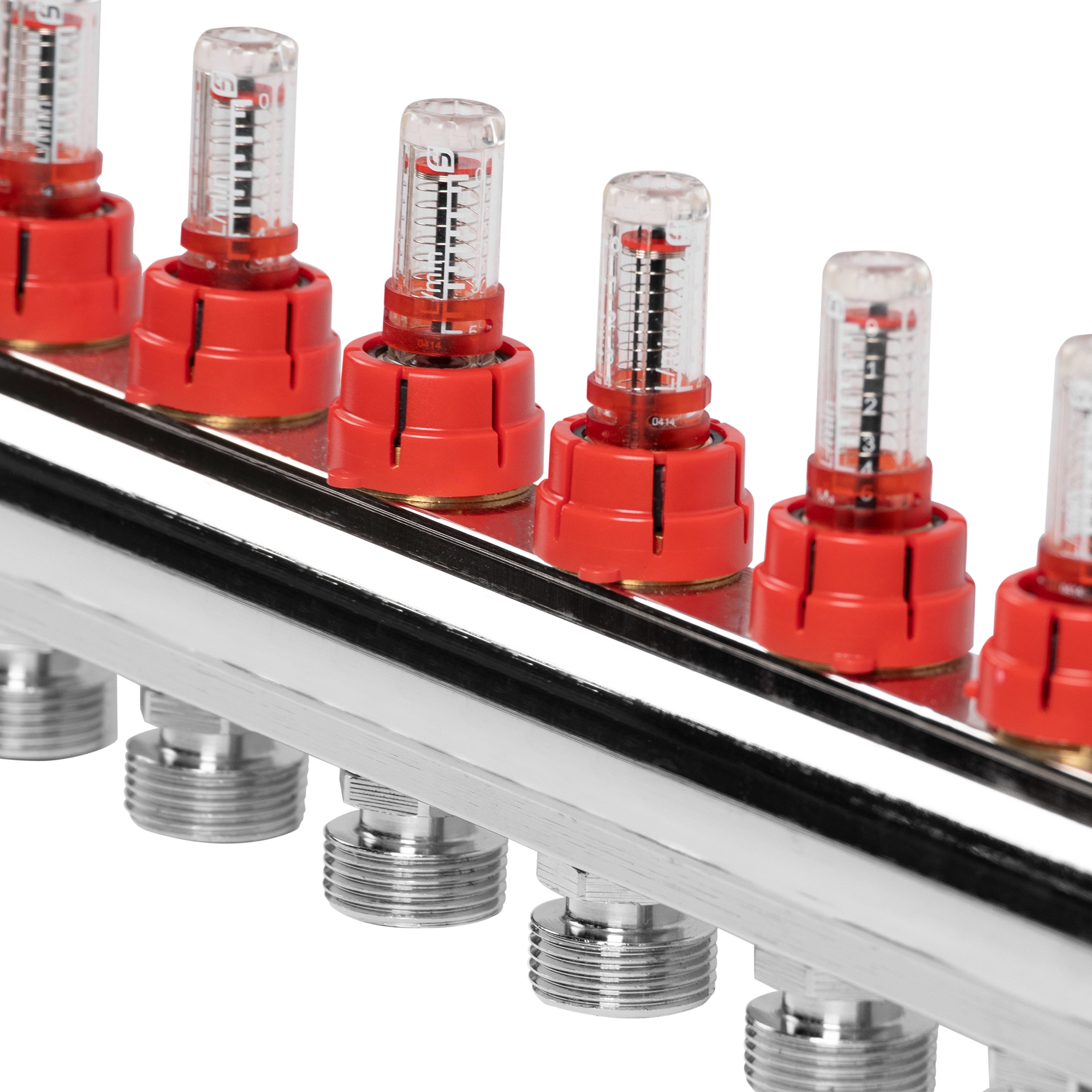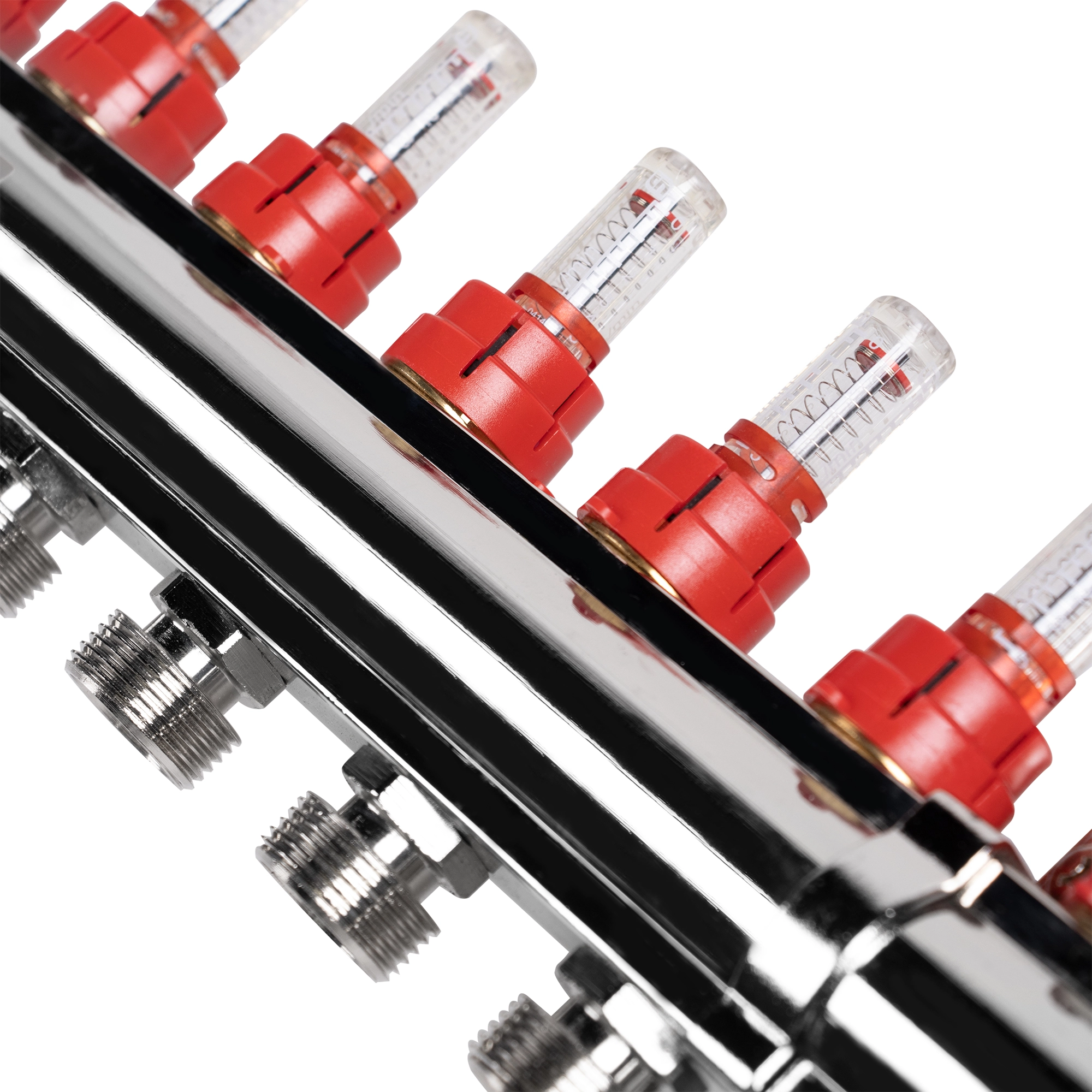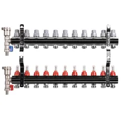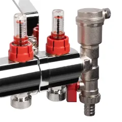 Коллекторы в сборе с расходомерами применяется для распределения и визуального контроля теплоносителя в системах напольного и комбинированного отопления, а также холодного водоснабжения.