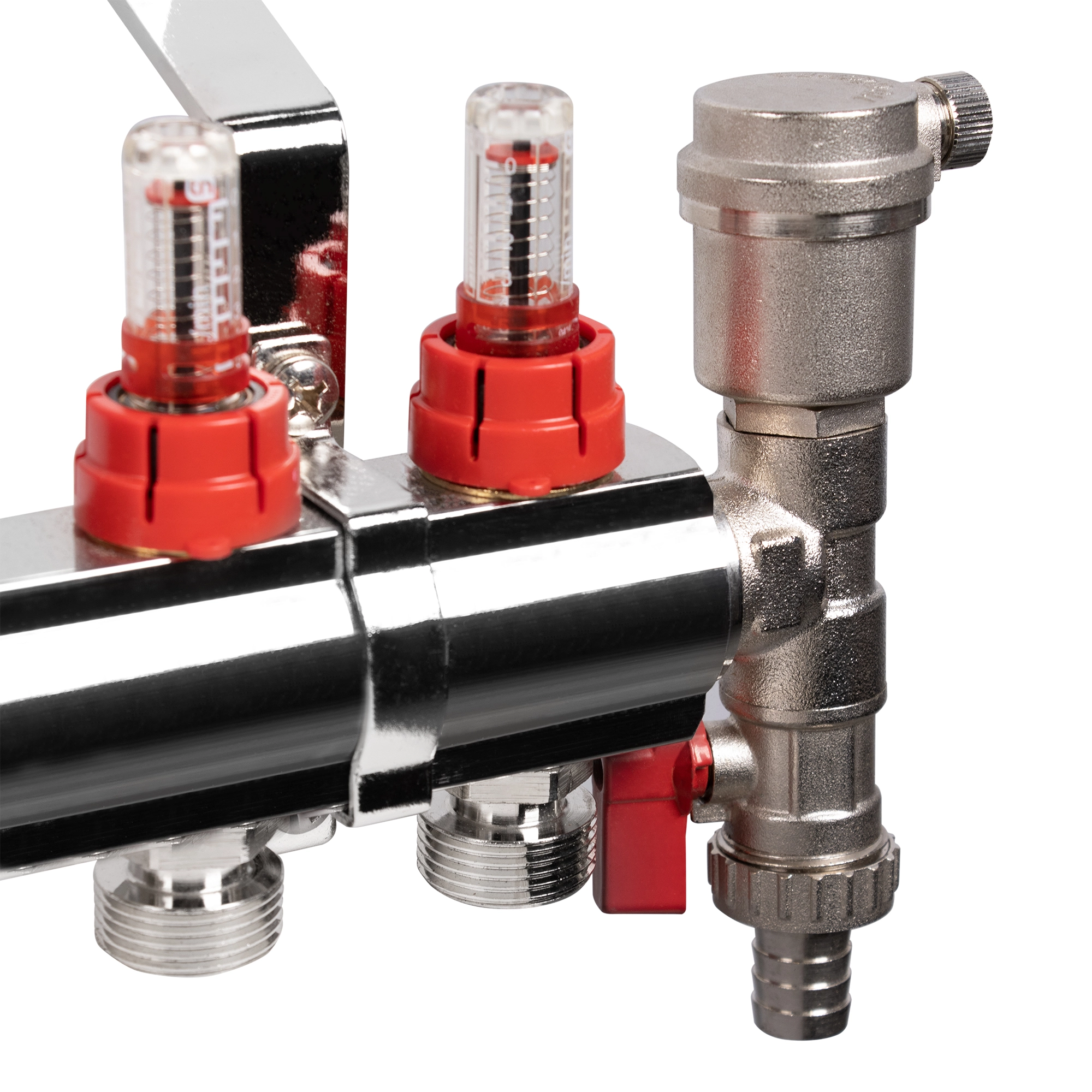 Коллектор Royal Thermo нерж. в сборе с расходомерами 1" ВР-3/4" НР с автомат. воздухоотвод-ми 4 вых.
