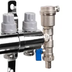 Коллектор Royal Thermo нерж. в сборе универсальный 1" ВР-3/4" НР с автомат. воздухоотвод-ми 3 вых.