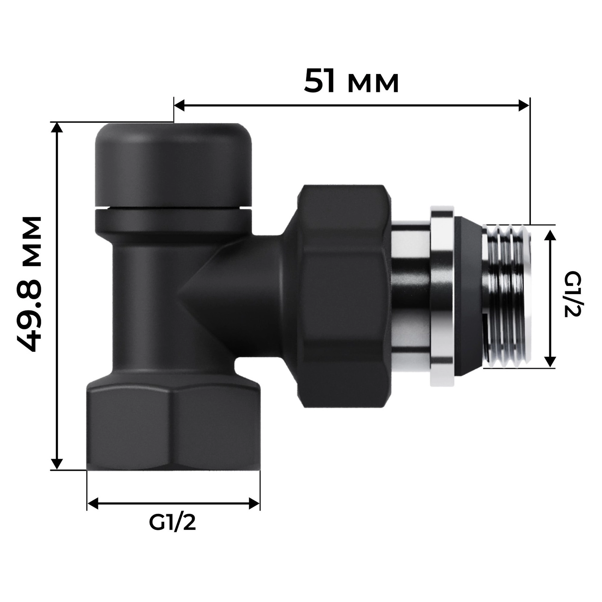 Набор термостатический угловой Royal Thermo Design 1/2"М30х1,5 (Черный)