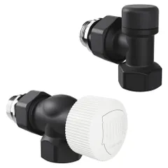 Термостатические наборы серии Design поставляется в комплектации: клапан термостатический для установки на подающий трубопровод, запорный клапан для установки на обратный трубопровод.