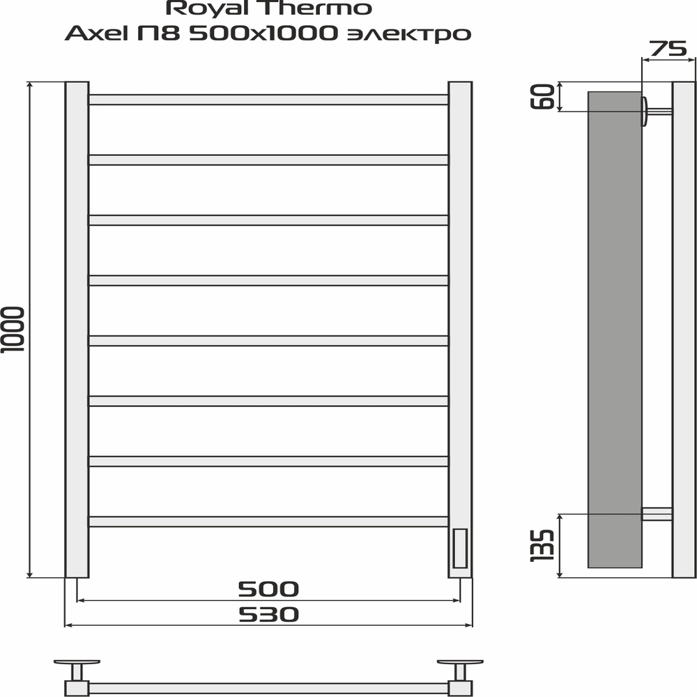 Полотенцесушитель Royal Thermo Axel П6 500х800 электро (встроен. диммер) стальной