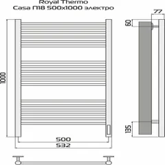 Полотенцесушитель Royal Thermo Casa П18 500х1000 электро (встроен. диммер) черный