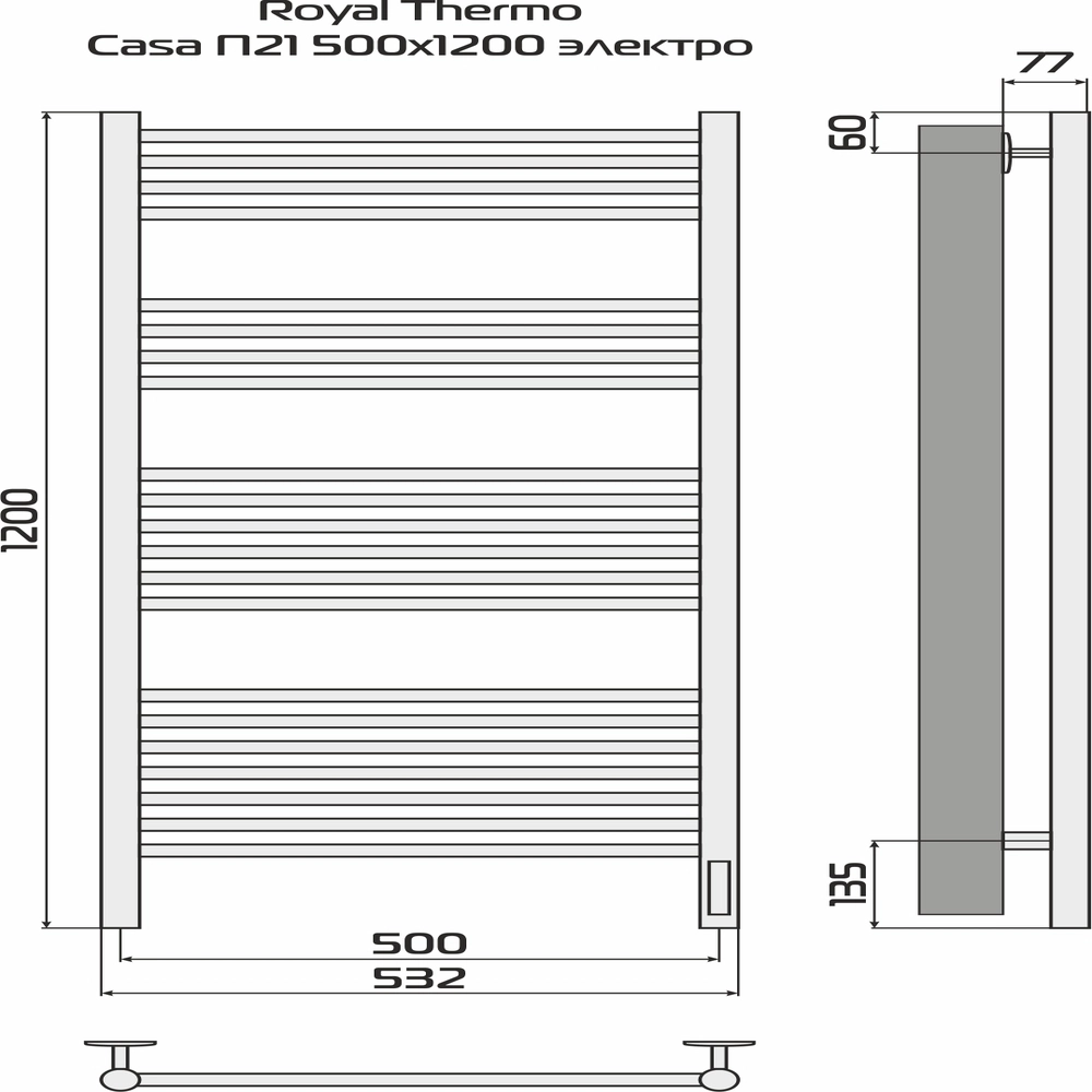 Полотенцесушитель Royal Thermo Casa П21 500х1200 электро (встроен. диммер) черный