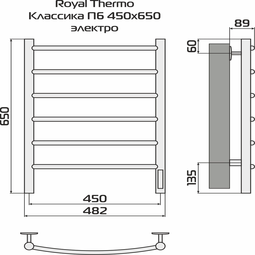 Полотенцесушитель Royal Thermo Классика П6 450х650 электро (встроен. диммер)