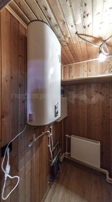 Для того чтобы сэкономить место в ванной комнате для хранения вещей, водонагреватель установили в кладовой комнате. Выбор дизайнера пал на компактную и эргономичную модель электрического накопительного водонагревателя Ballu SMART в белом цвете. Прибор отличается оригинальным современным дизайном, плоской формой корпуса и универсальным типом установки, благодаря чему его можно устанавливать в любом месте в помещении как вертикально, так и горизонтально, что существенно упрощает монтаж.