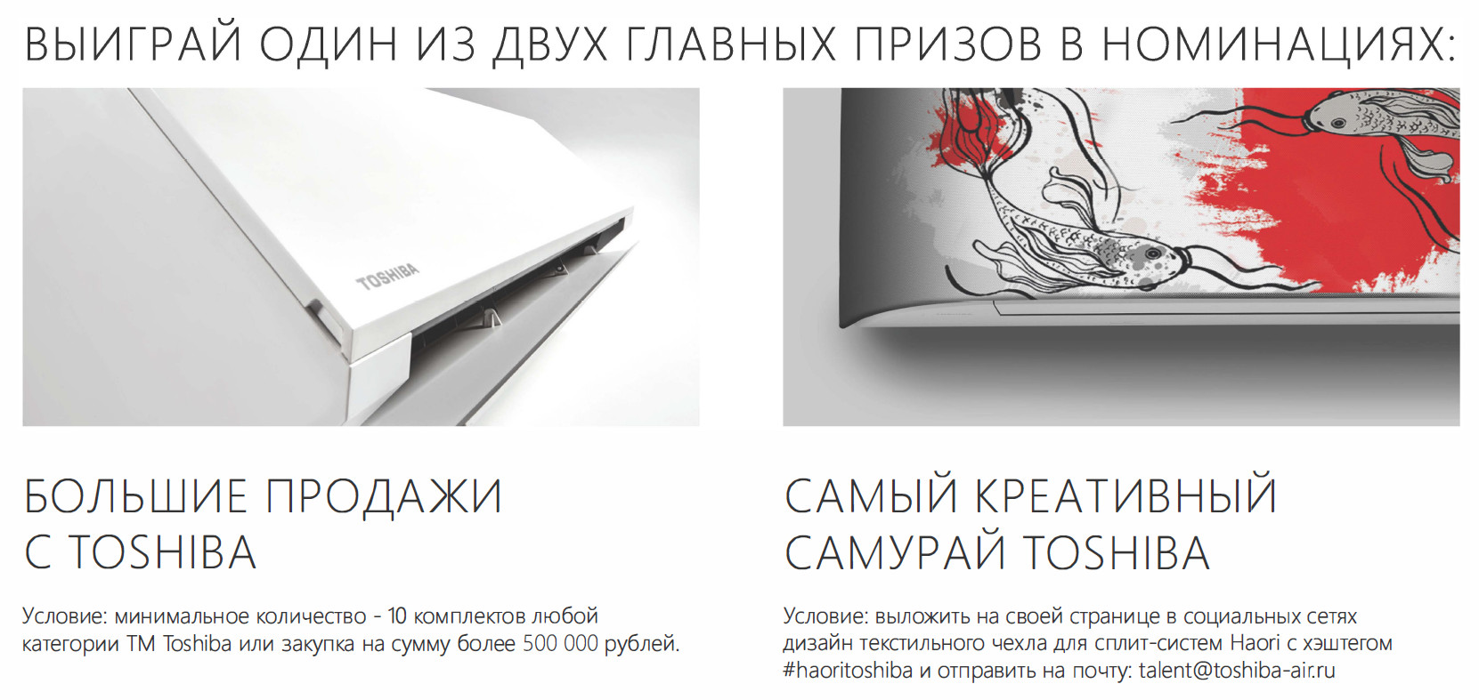 Включайте кондиционеры Toshiba в свои проекты. При сумме заказов от 500 000 рублей Вы участвуете в розыгрыше главного приза. Призы всем участникам.