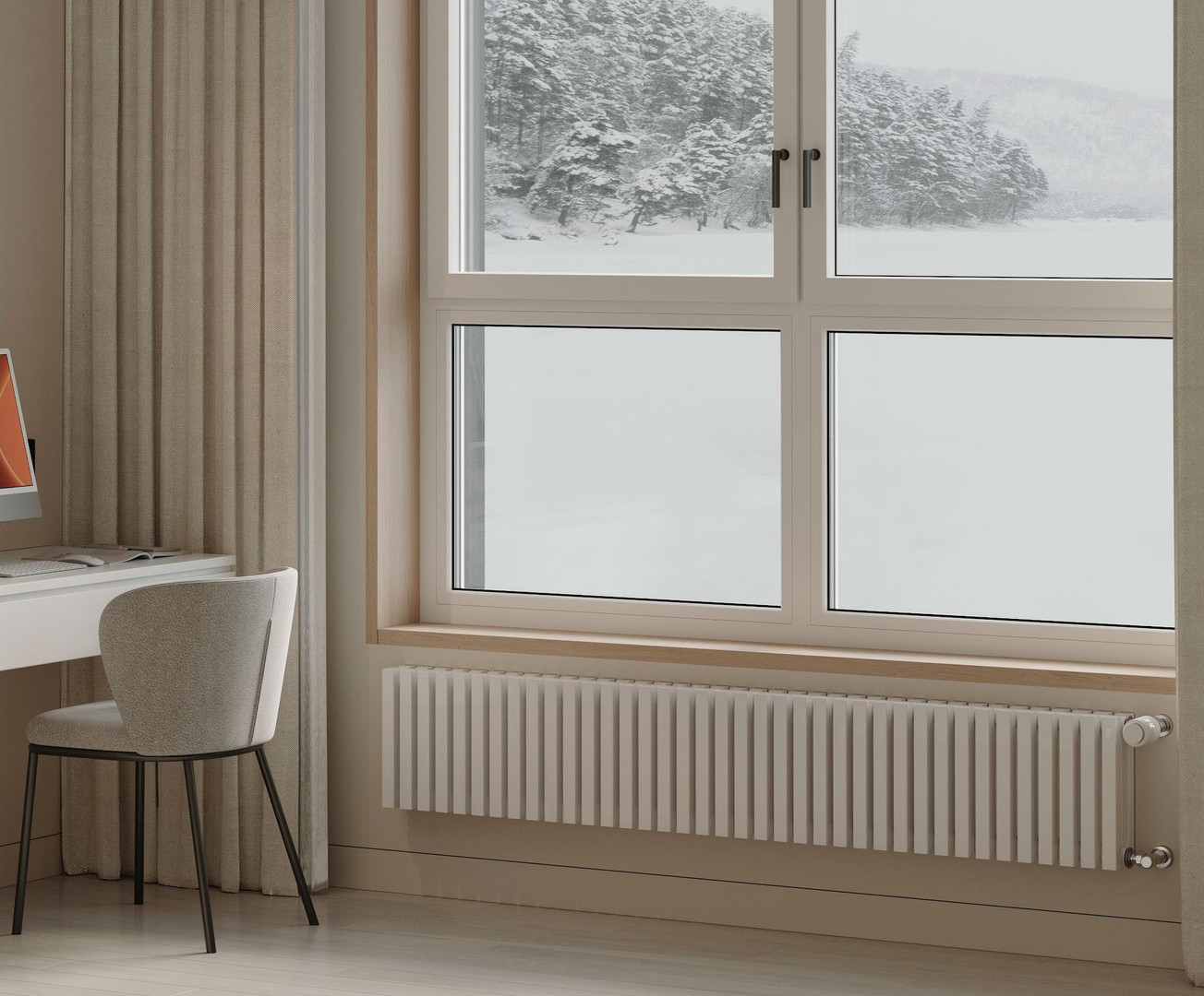 - Ориентация. Для монтажа под подоконник подходят классические горизонтальные модели. Узкие вертикальные устройства выглядят неординарно и экономят пространство в помещении.