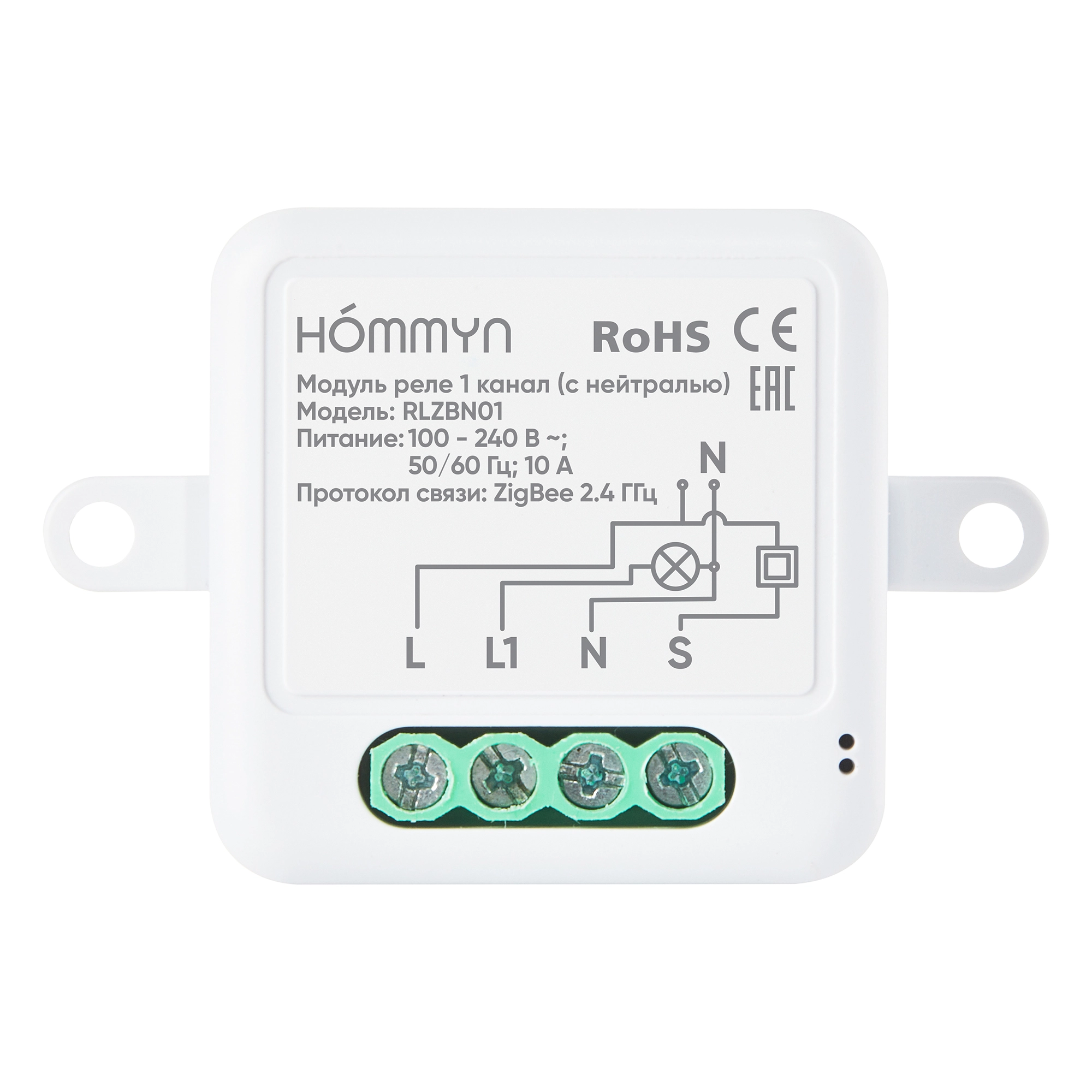 Умное реле – это надежное устройство, предназначенное для создания умного домашнего окружения. Одноканальное умное реле позволяет «прокачать» ваш любимый домашний «неумный» одноклавишный выключатель или розетку, делая их умными, не меняя их оригинальные функции и внешний вид. Компактный размер реле позволяет провести его монтаж в стандартный круглый подрозетник, спрятав его в стене за выключателем. Для подключения требуется питающая линия L (фаза) и нулевая линия N (нейтраль). Умное реле добавляет возможность удаленного управления освещением и розетками через приложение или с помощью голосовых помощников Алиса, Салют, Маруся. Реле поддерживает передачу данных по беспроводному протоколу Zigbee 3.0. Реле Hommyn работает с приложениями умного дома: Hommyn,Tuya Smart life, Home Assistant, Дом с Алисой, Салют умный дом. Для подключения к приложению требуется zigbee хаб. Для подключения к приложению Hommyn требуется оригинальный zigbee хаб HOMMYN Hub HH-01. Выбирая реле Hommyn, вы получаете качественное и надежное устройство, которое повысит уровень вашего комфорта и безопасности.