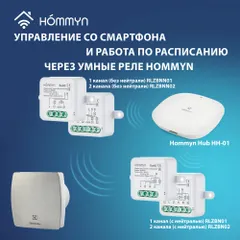 Для управления вытяжным вентилятором со смартфона и настройки работы по расписанию необходимо подключить его через умный выключатель или реле Hommyn! при необходимости установить Блок управления (шлюз) HOMMYN