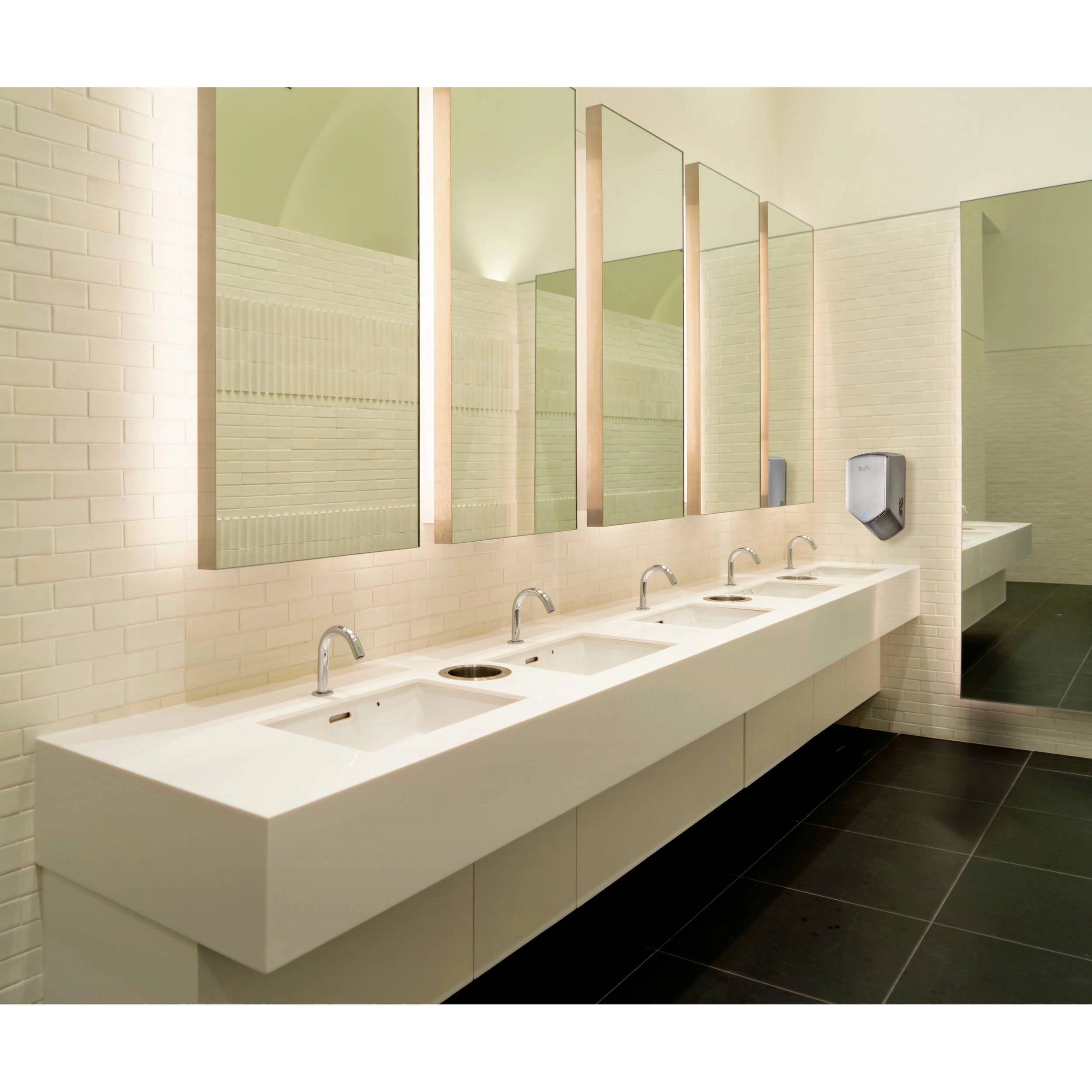 Благодаря направленному потоку воздуха, рукосушитель серии Typhoon обеспечивает равномерное и эффективное высушивание рук, минимизируя распыление воды и создавая комфортную среду для пользователей.