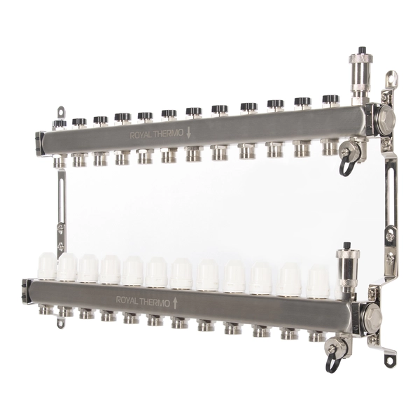 Коллектор Royal Thermo нерж. в сборе с расходомерами 1" ВР-3/4" НР с автомат.воздухоотвод-ми 11 вых.