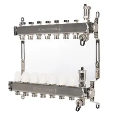 Коллектор Royal Thermo нерж. в сборе с расходомерами 1" ВР-3/4" НР с автомат. воздухоотвод-ми 9 вых.