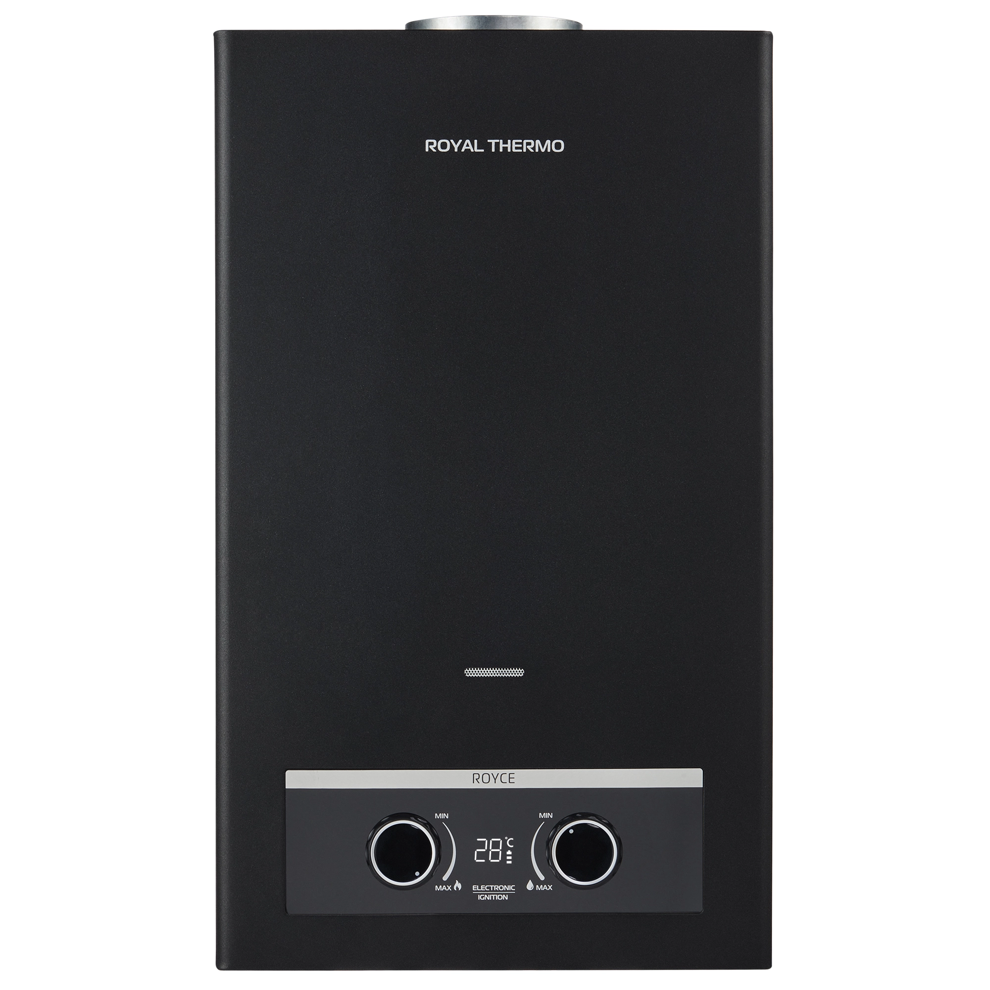 Флагманская серия газовых водонагревателей Royce, в конструкцию которых положены самые передовые технологии, обладает высокой производительностью и долговечностью. Приборы оснащены удобным и безопасным электронным розжигом, а также информативным современным цифровым дисплеем, который отображает температуру нагрева воды, заряд батареи и индикацию пламени на горелке.