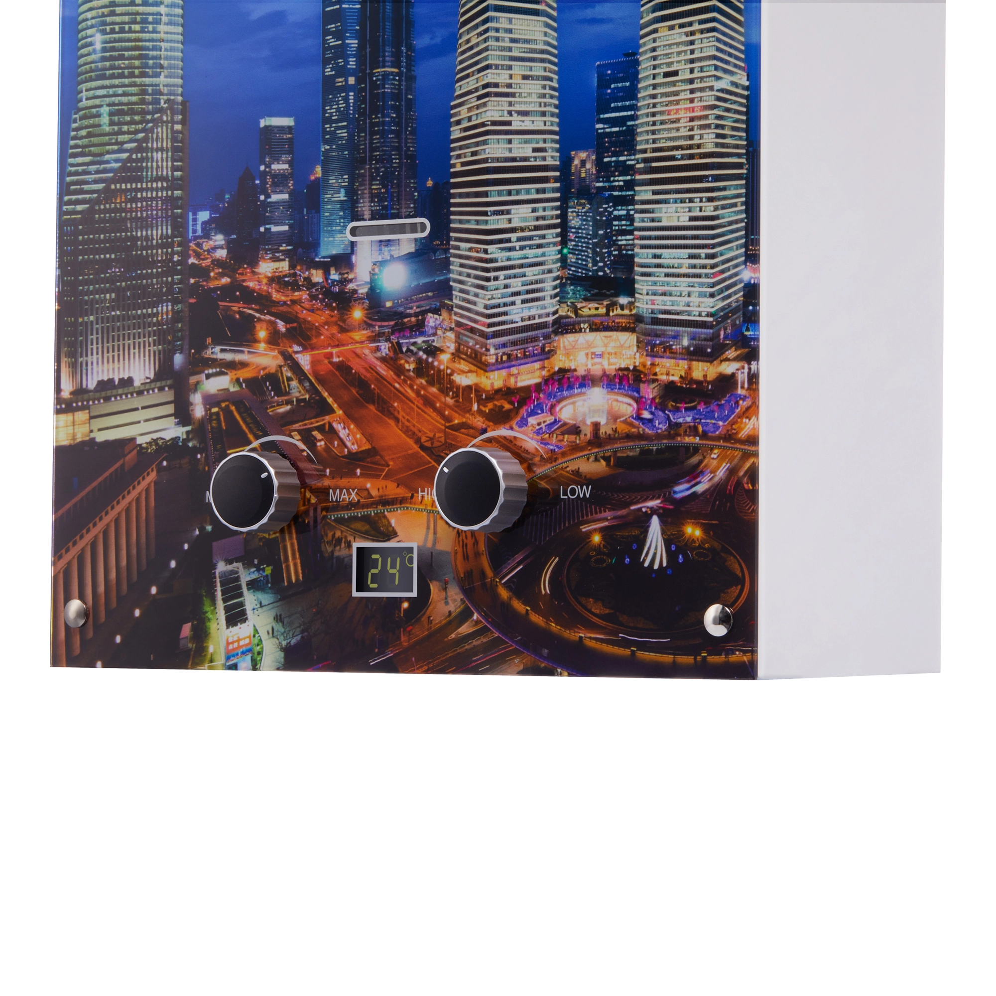 Газовые колонки Fonte Glass - это дизайн серия приборов, лицевая сторона выполнена из стеклянной панели с различными принтами. На выбор 6 вариантов панелей, это даёт возможность органично вписать прибор в любой интерьер.
