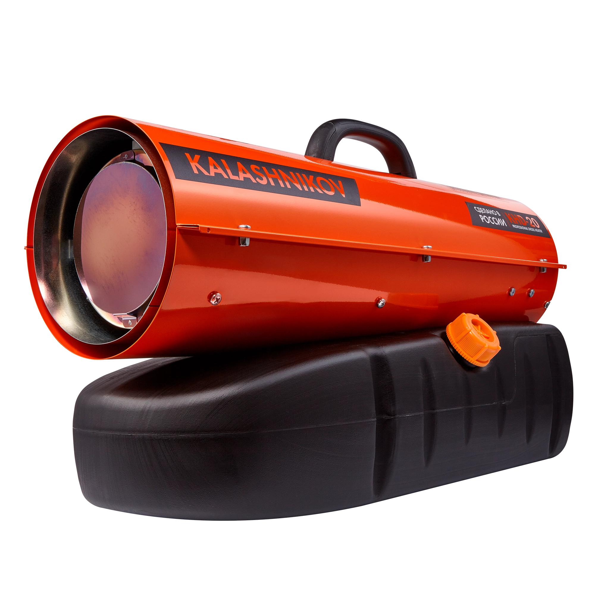 Дизельная тепловая пушка KALASHNIKOV KHD-20 – это мощный обогреватель, работающий на дизельном топливе. Предназначена для обогрева нежилых помещений и локального прогрева рабочих поверхностей. Высокий уровень КПД прибора близок к 100%, а тепловая мощность 20 кВт, производимая тепловой пушкой – вполне достаточна для использования устройства в качестве мощного генератора тепла.