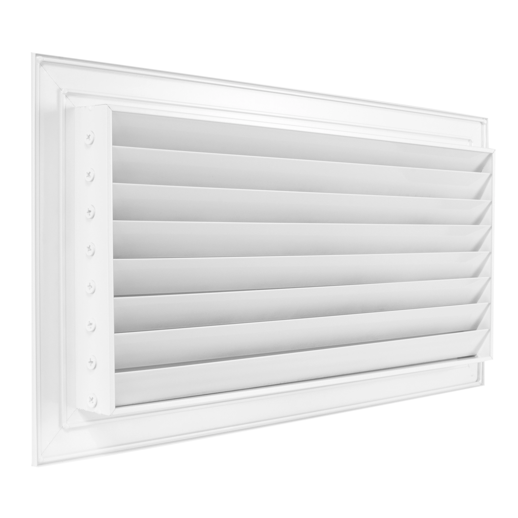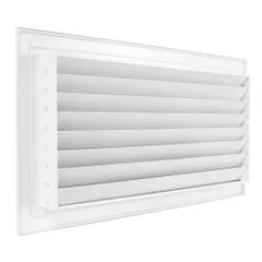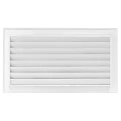 Решетка служит для перетока воздуха в соседних помещениях. Применяется в межкомнатных дверях и перегородках. Материал — алюминий, цвет белый. Препятствуют проникновению шума из одного помещения в другое за счет шумоглушащего профиля жалюзи.