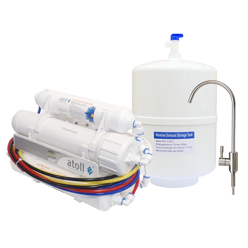 Система очистки воды на основе обратного осмоса Atoll Compact A-475m RKT с минерализатором. Предназначена для доочистки воды в бытовых условиях и ее последующего употребления в пищу, а также других целей. Удаляет до 99,9% всех примесей содержащихся в воде и предотвращает образование накипи в нагревательных приборах. Фильтрация осуществляется за счет прохождения воды под напором через полупроницаемую мембрану, которая пропускает только молекулы воды и кислорода.