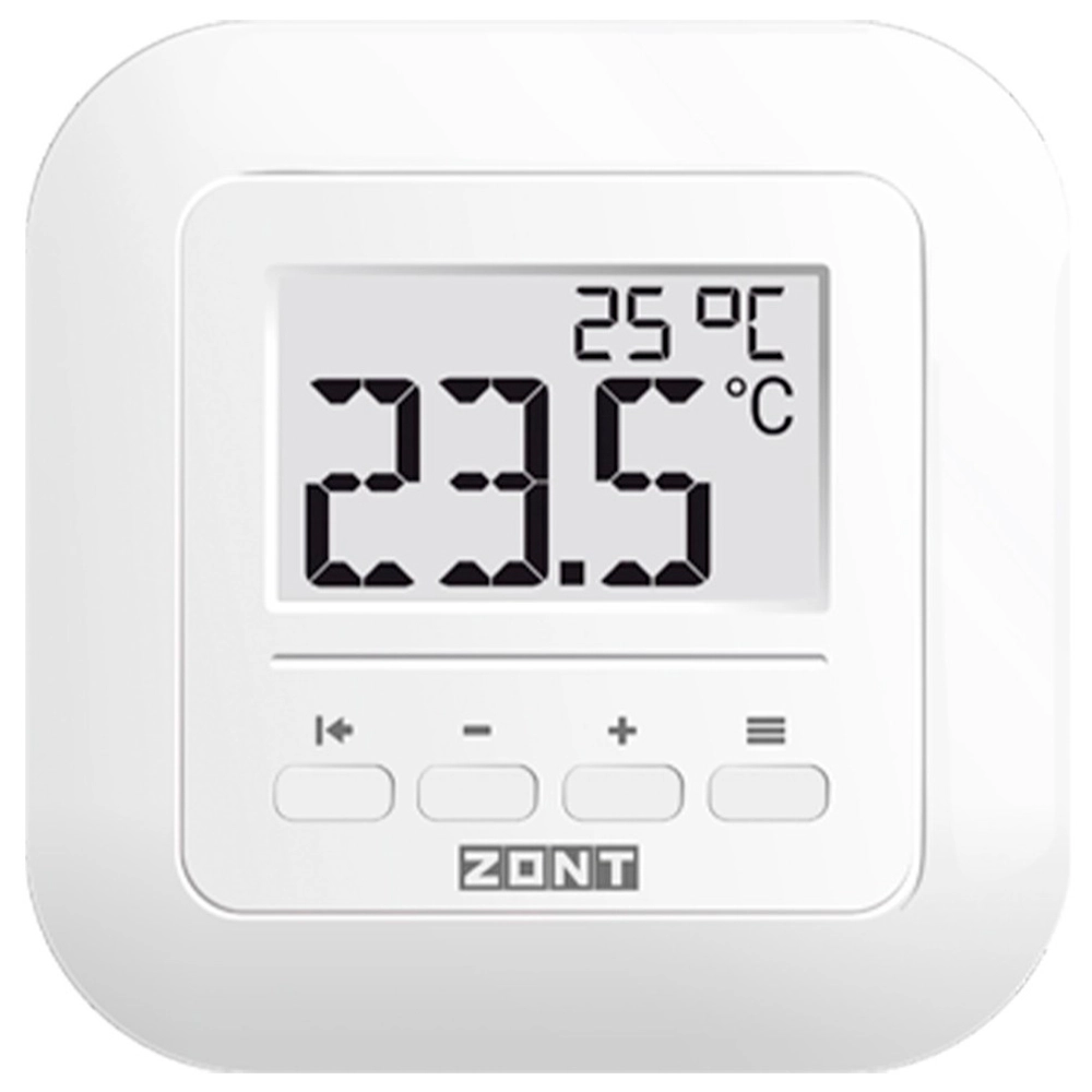 Комнатный термостат ZONT МЛ-332 предназначен для контроля температуры воздуха в отдельной зоне обогрева с отображением текущего и целевого значения температуры на дисплее. Ввод целевого значения температуры осуществляется вручную через термостат или дистанционно из сервиса ZONT. Для измерения температуры используется встроенный датчик воздуха NTC-10.