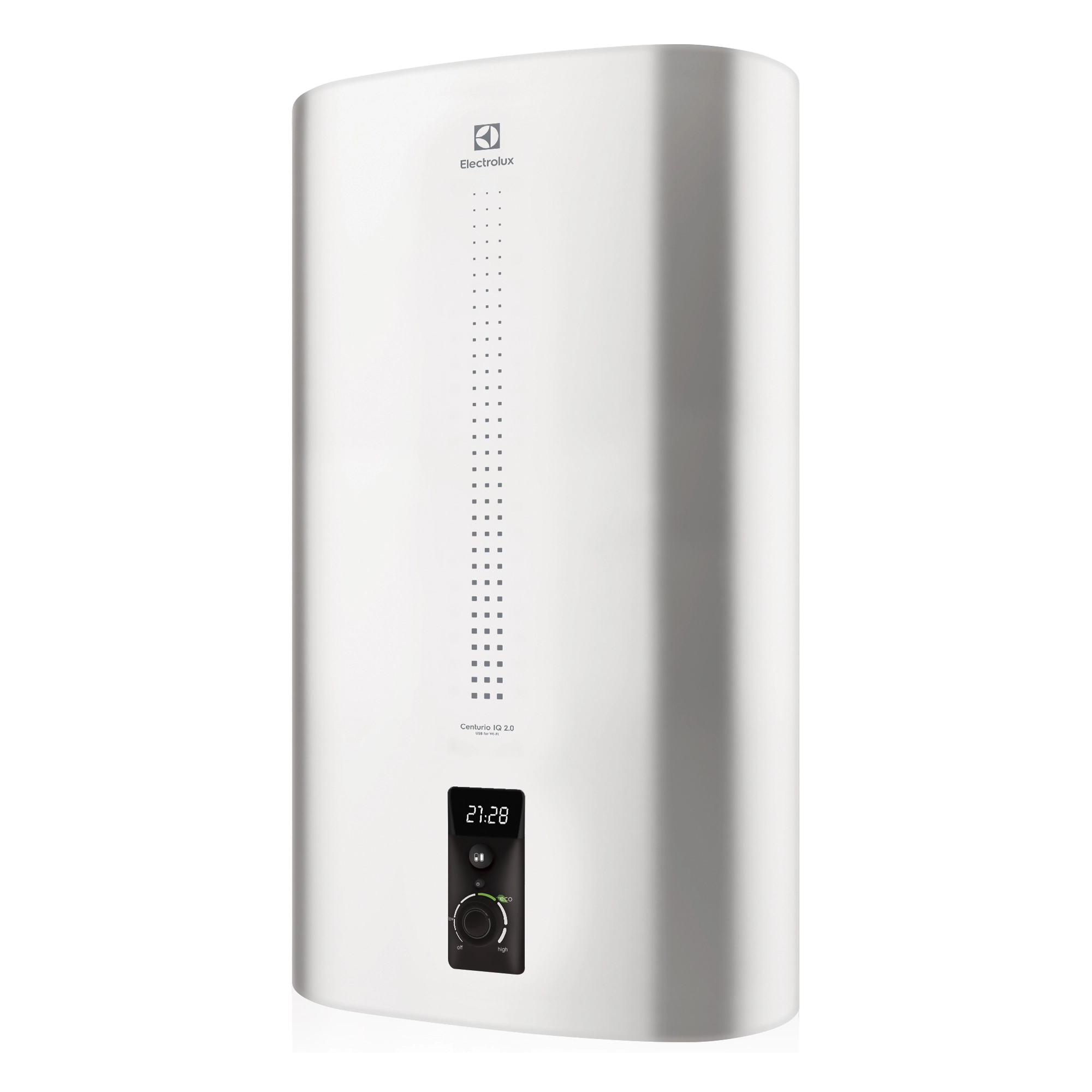 Electrolux серии EWH Centurio IQ 2.0 электрический накопительный водонагреватель с внутренним баком из нержавеющей стали и USB-разъемом для возможности управления прибором по сети Wi-Fi.
