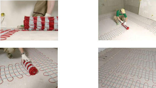 Выбор практичного растягивающегося мата Multi Size Mat для дизайн-проекта не случаен. Мат имеет уникальную тянущуюся основу и укладывается под любые напольные покрытия, в том числе деревянные, а его эластичная основа позволяет варьировать форму укладки: от привычной прямоугольной формы до укладки ромбом или трапецией. Таким образом, можно обойти все «препятствия» и установить тёплый пол сложной геометрии, что стало весьма удобно для монтажа теплых полов на кухне с крупногабаритной стационарной техникой.