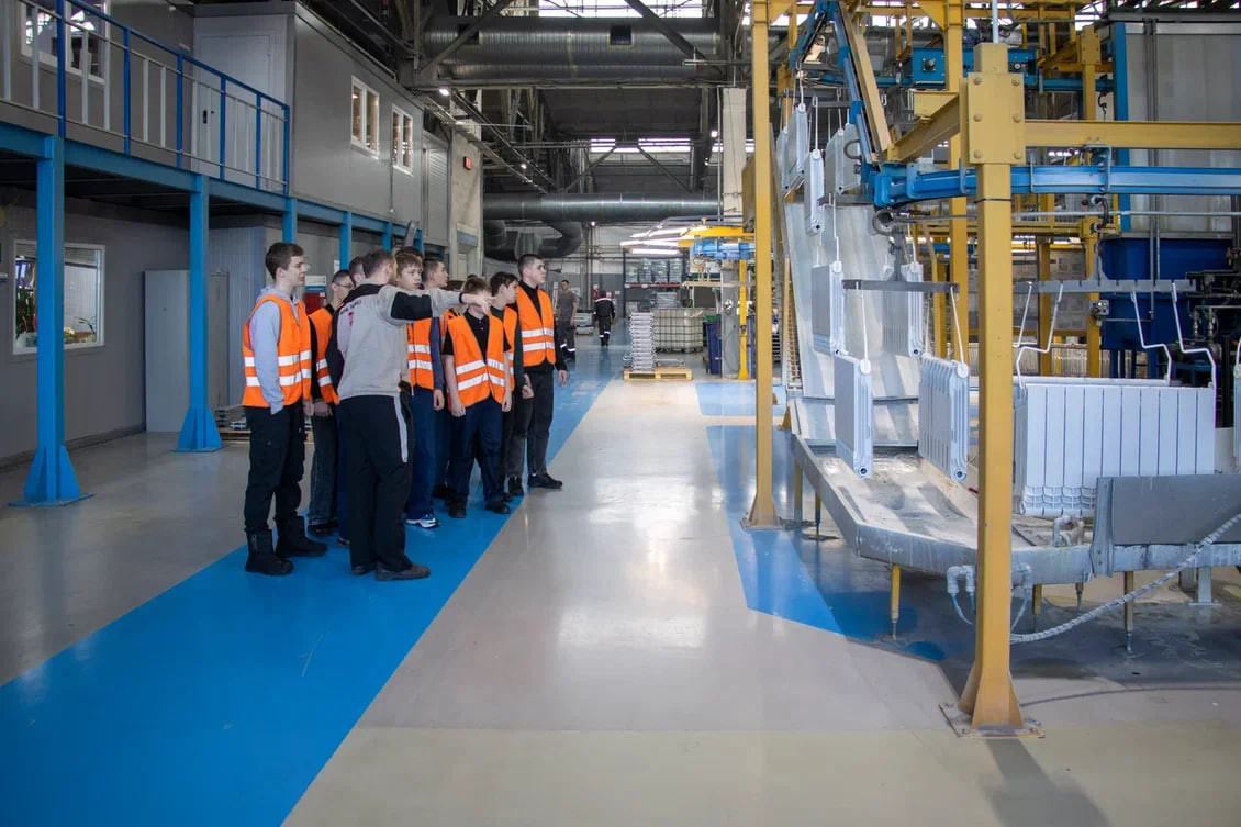 Для ребят это была уникальная возможность увидеть современное автоматизированное производство, на 100% локализованное в России. Его масштабы впечатляют: ежегодно здесь выпускают более 18,5 миллиона секций. Гости прошли все ключевые участки — от плавки металла до механической обработки, семиэтапной покраски и упаковки. Студенты убедились: завод не только крупнейший, но и «умный», роботы здесь трудятся вместе с людьми.