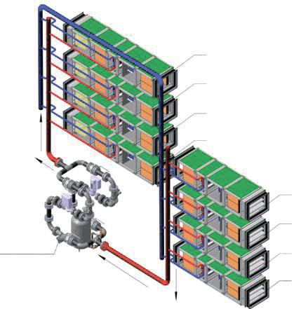 Данная система специально разработана для рекуперации тепла в регионах с холодным климатом, когда пластинчатые и роторные рекуператоры не способны стабильно работать из-за обмерзания. Рекуперация тепла осуществляется теплообменниками с промежуточным теплоносителем, установленными на приточных и вытяжных воздуховодах, которые объединены в одну систему.