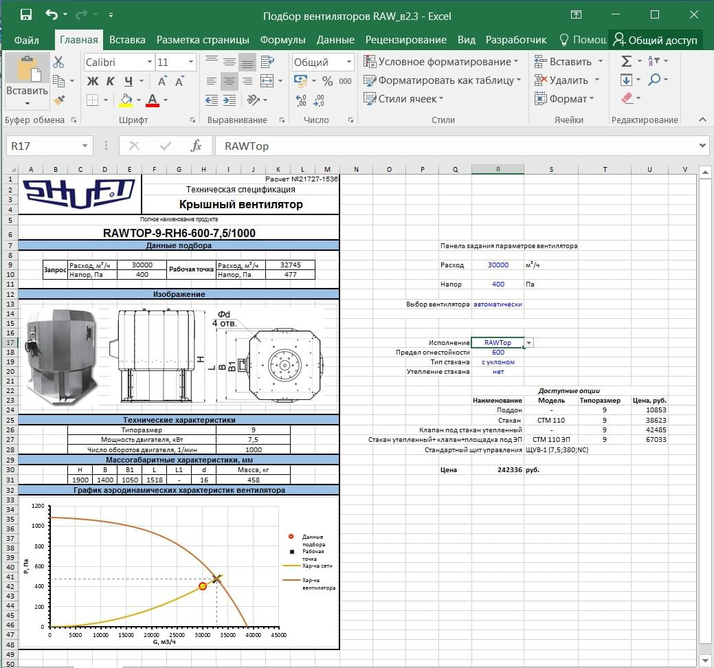 Инструмент подбора крышных вентиляторов
