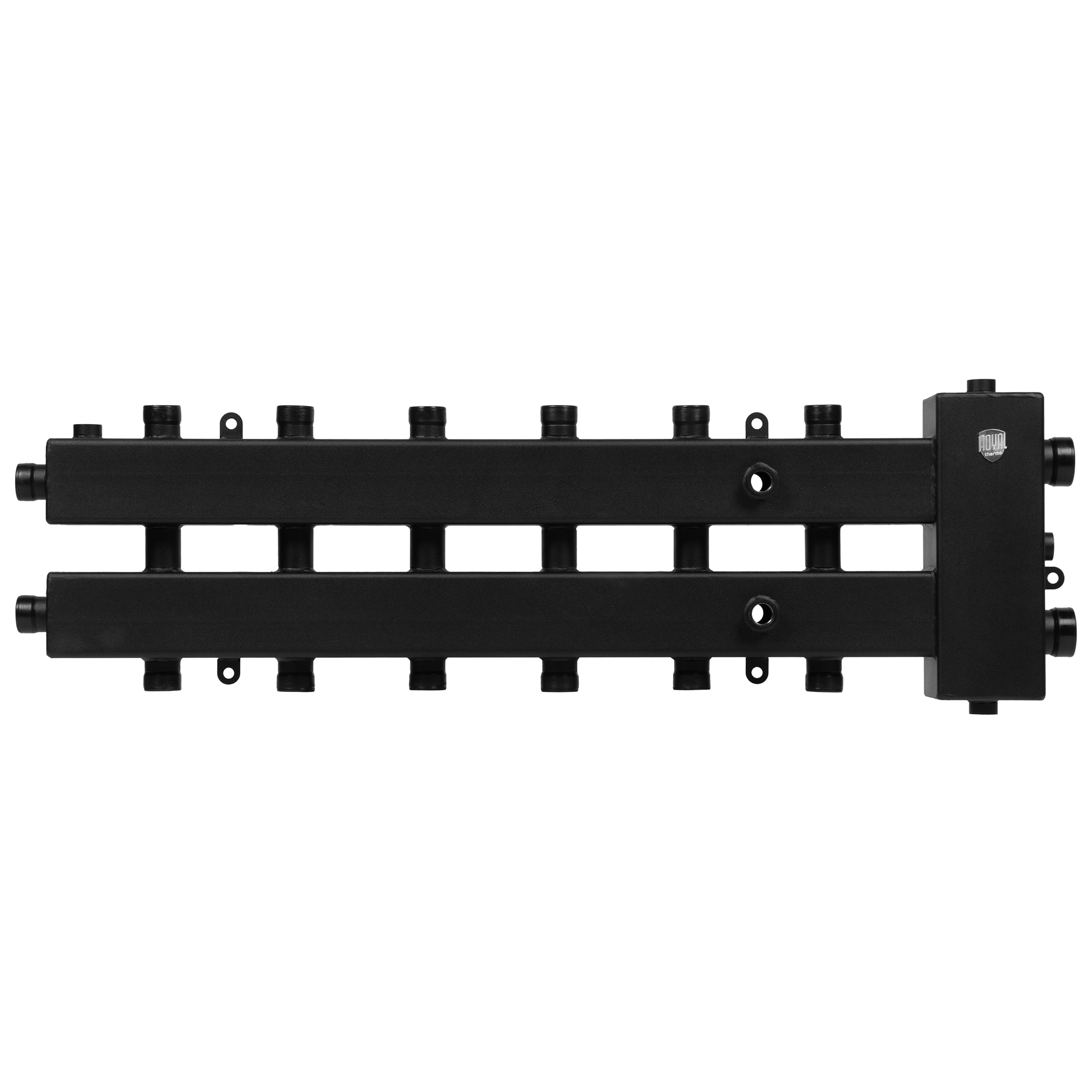 Предназначенный для работы с мощностью до 60 кВт, блок коллекторный Royal Thermo обеспечивает эффективное распределение теплоносителя по контурам отопления, гарантируя равномерный прогрев помещений и оптимальное использование энергии. Наличие стрелки позволяет точно настроить и контролировать потоки, минимизируя потери и повышая энергоэффективность системы.