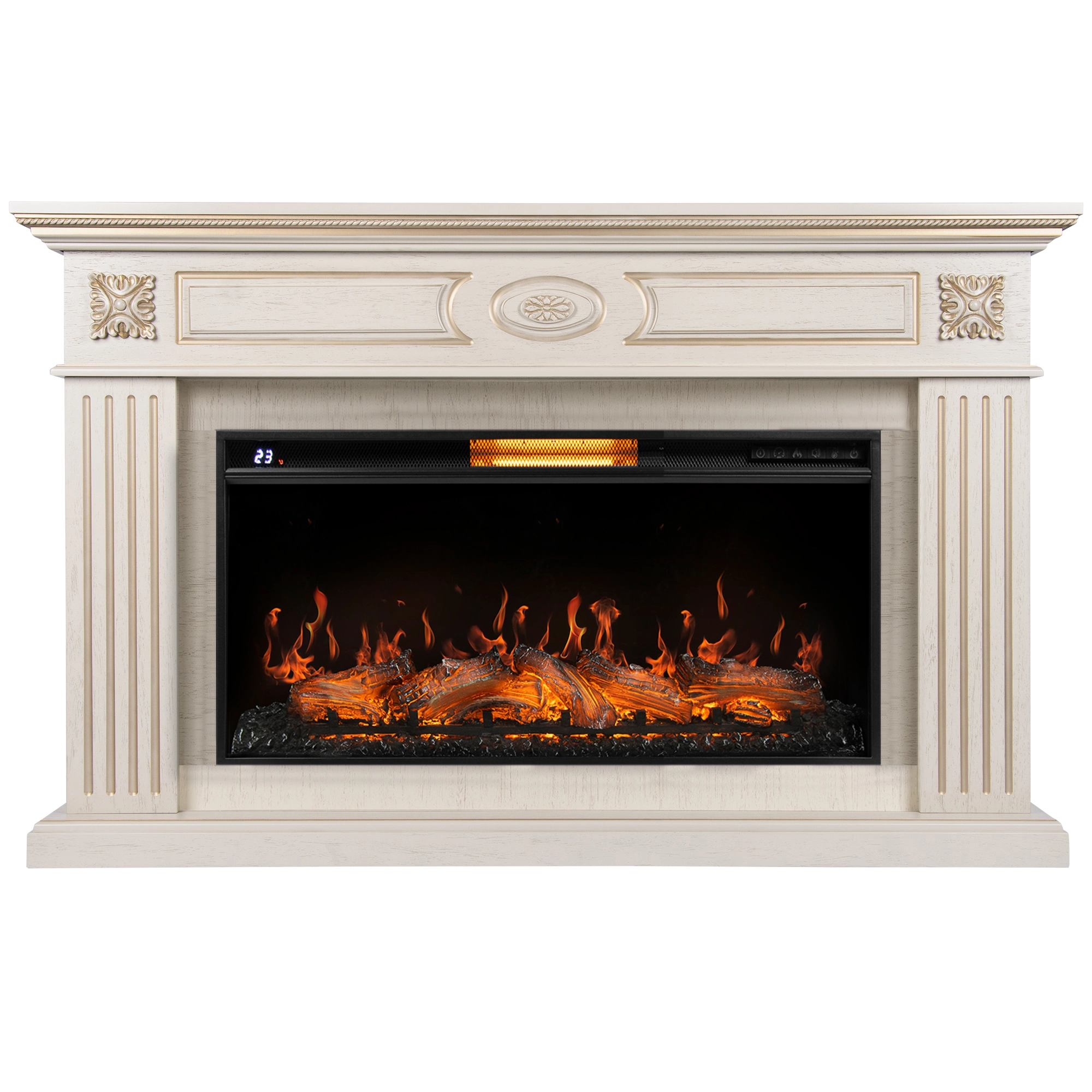 Каминокомплект: Очаг Royal Thermo Aurora RTFP/P-AR60LS, портал Olympia 60 сл. кость с зол. патиной