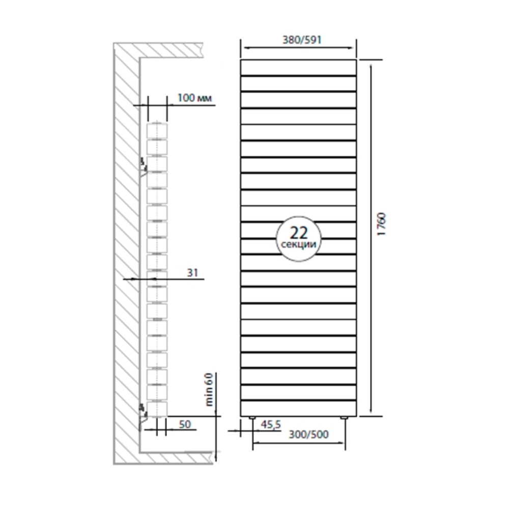 • Дополнительное оребрение на вертикальном коллекторе секции увеличивает теплоотдачу радиатора на 5%.