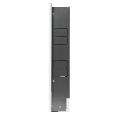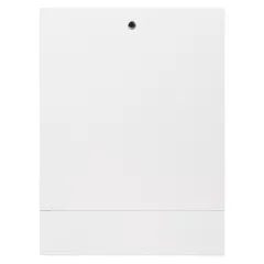 Шкаф изготовлен из цельного стального листа. Технология изготовления без применения сварки. Корпус шкафа выполнен из оцинкованной стали. Передние панели окрашены порошковой краской RAL 9016 с предварительным нанесением фосфатной пленки для придания антикоррозионных свойств изделию. В боковых стенках корпуса шкафа выполнена перфорация, сегменты которой удаляются в любом удобном месте для подсоединения трубопроводов.