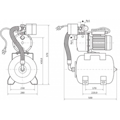Система управления насосом с управляющим агрегатом и мембранным напорным баком, манометрическим выключателем и манометром (0–6 бар). Все детали, находящиеся в контакте с перекачиваемой средой, не подвержены коррозии.