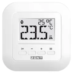 Комнатный двухпозиционный термостат ZONT МЛ-232 предназначен для поддержания постоянной температуры в отдельной зоне обогрева. Ввод целевого значения температуры осуществляется вручную или дистанционно из сервиса ZONT. Является дополнительным устройством и работает только совместно с контролером ZONT. Подключение к основному прибору осуществляется через интерфейс RS-485. Предназначен для установки внутри помещения.