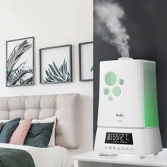- Яркий, контрастный дисплей в режиме реального времени позволяет отследить текущий уровень влажности, остаток воды в резервуаре, установленные режимы работы